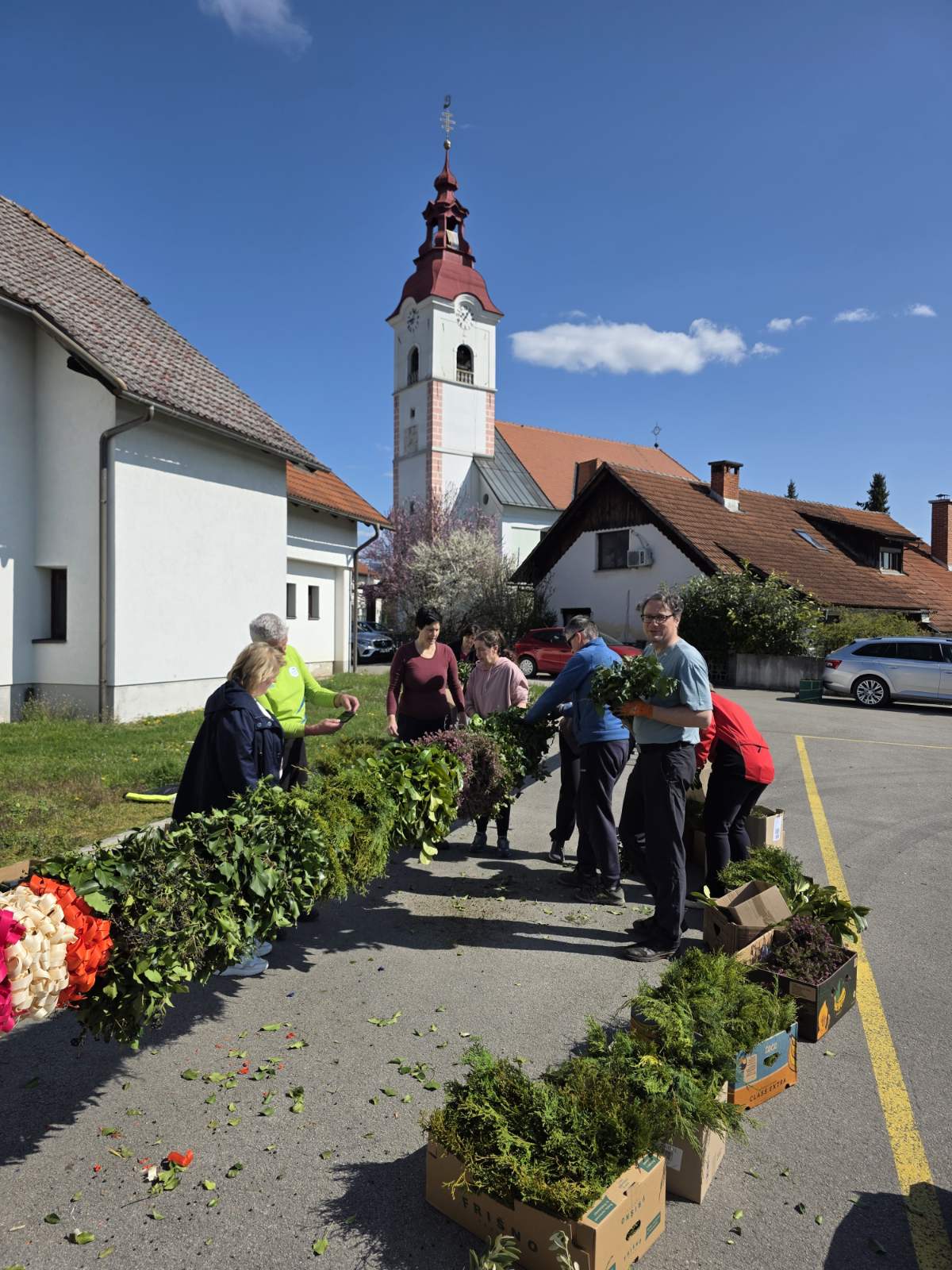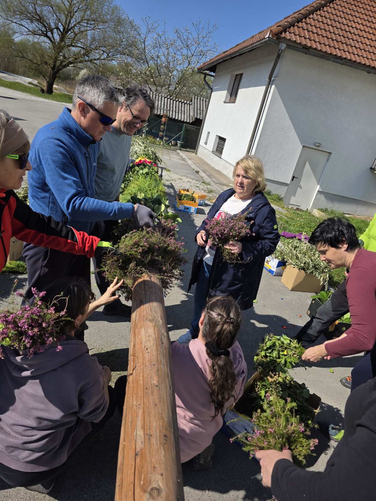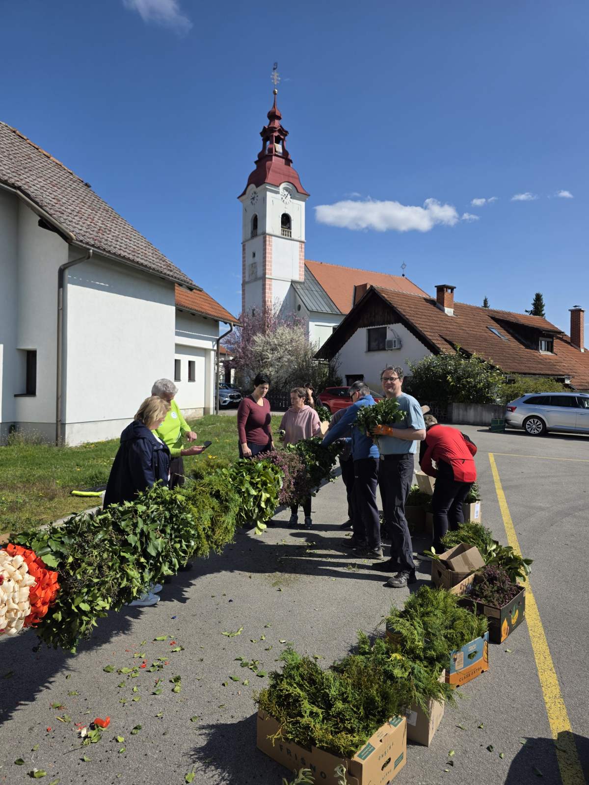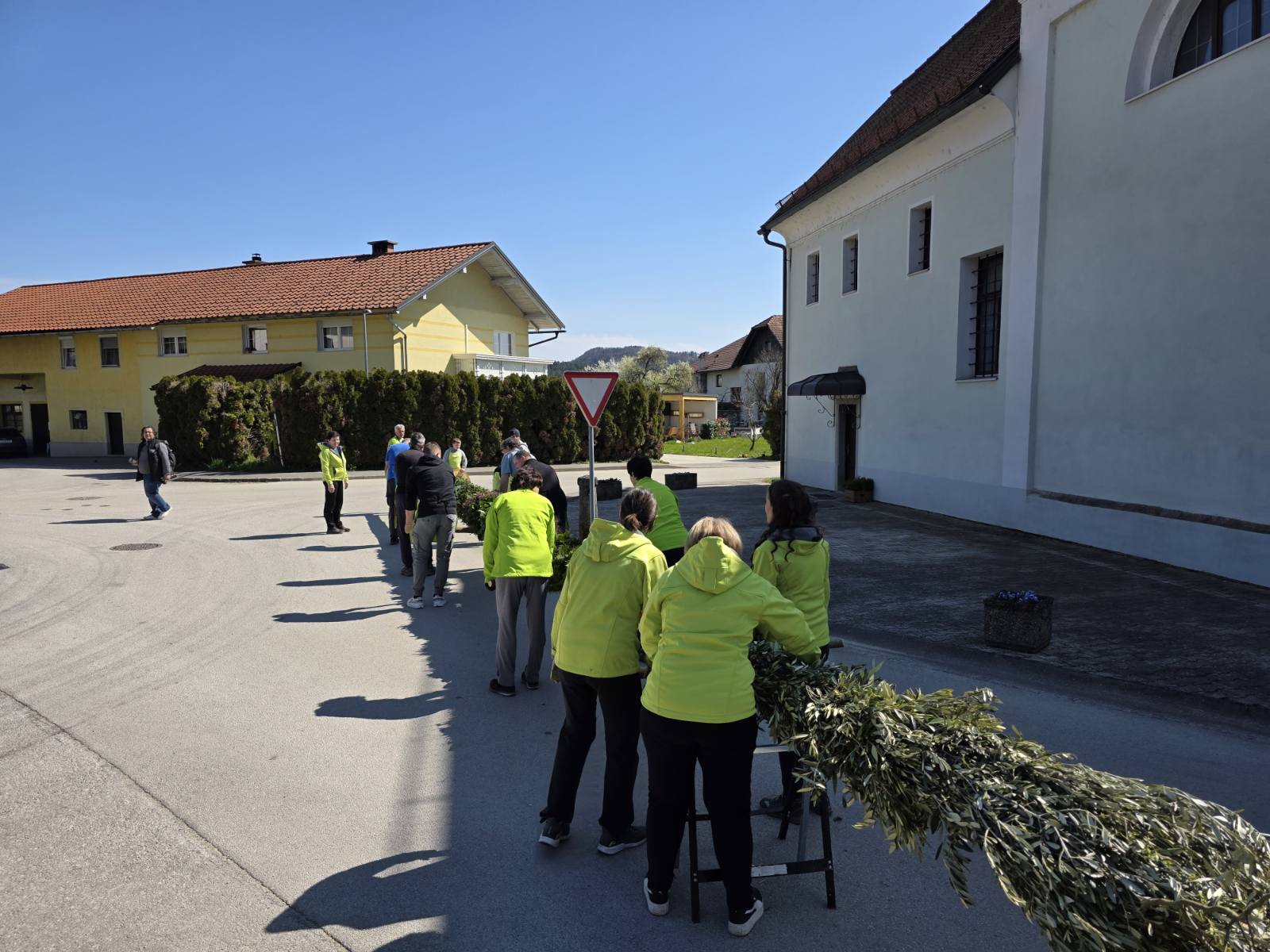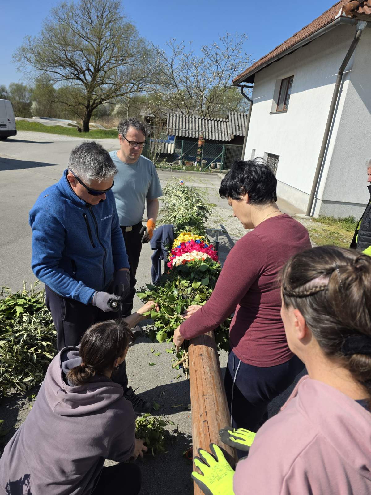 Priprave so potekale več tednov, saj je bilo treba najprej zbrati raznovrstno zelenje, nato pa iz njega spletati številne šopke. Pri tem je sodelovalo veliko pridnih rok – od članov društva do prostovoljcev in podpornikov. Posebnost butare je tudi sedem vrst zelenja, ki imajo v krščanstvu simbolni pomen. V soboto smo šopke postopoma pritrdili na smrekov drog, delo je potekalo usklajeno in v sproščenem vzdušju, pri tem zahtevnem, a hkrati prijetnem opravilu, sta se članom društva pridružila tudi županja Olga Vrankar in župnik Bernard Rožman.