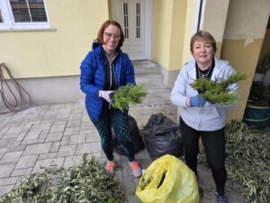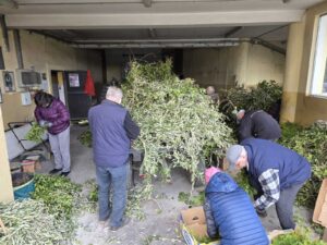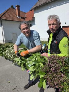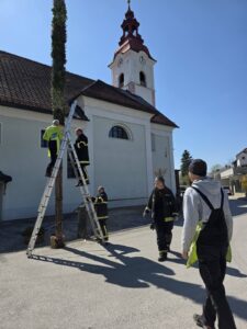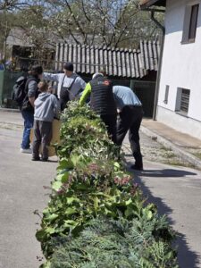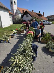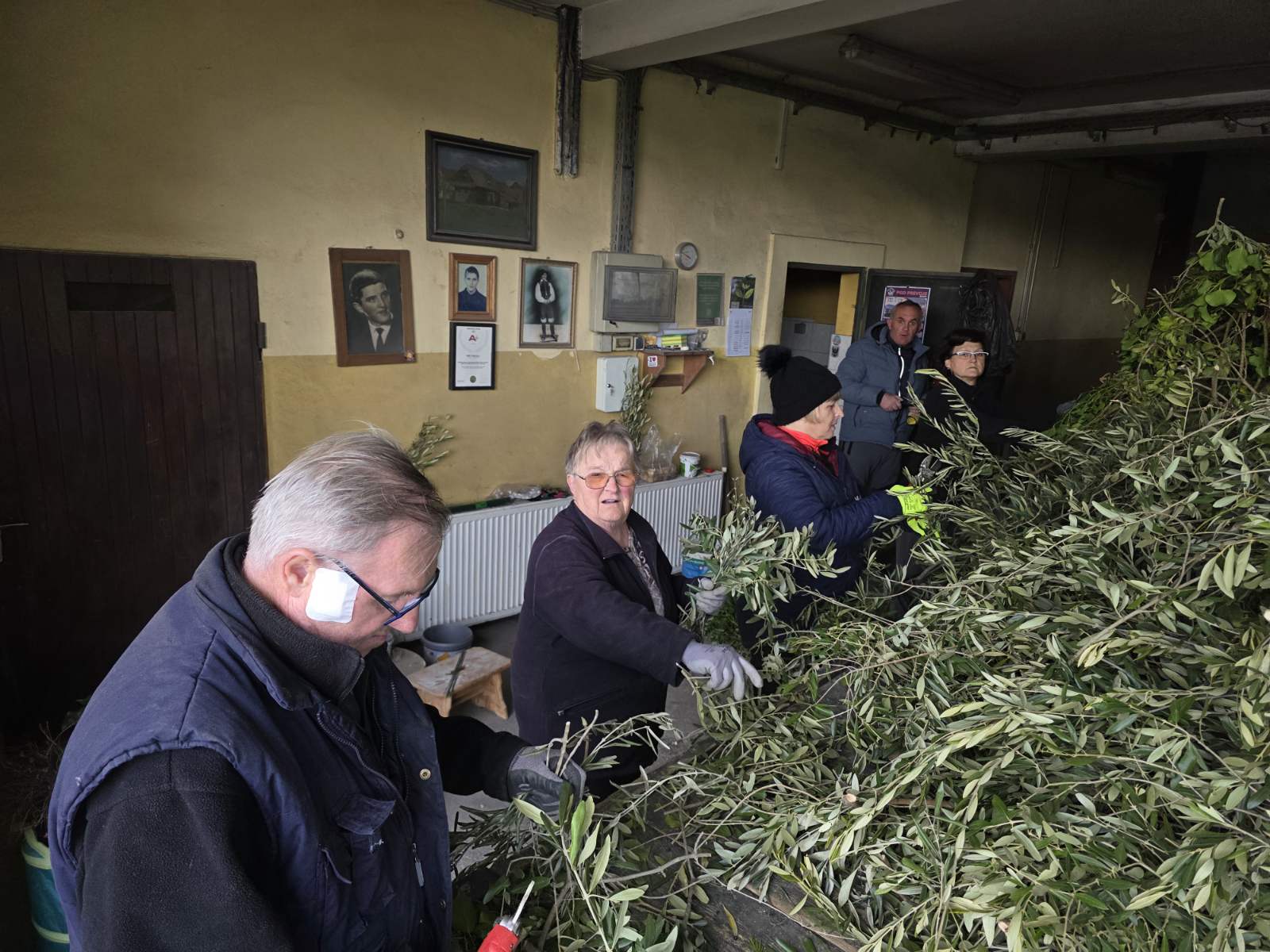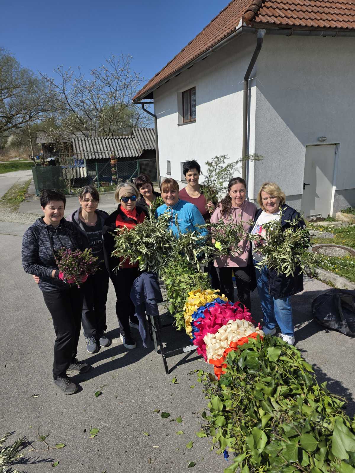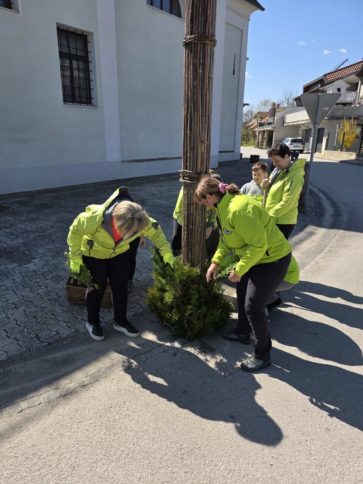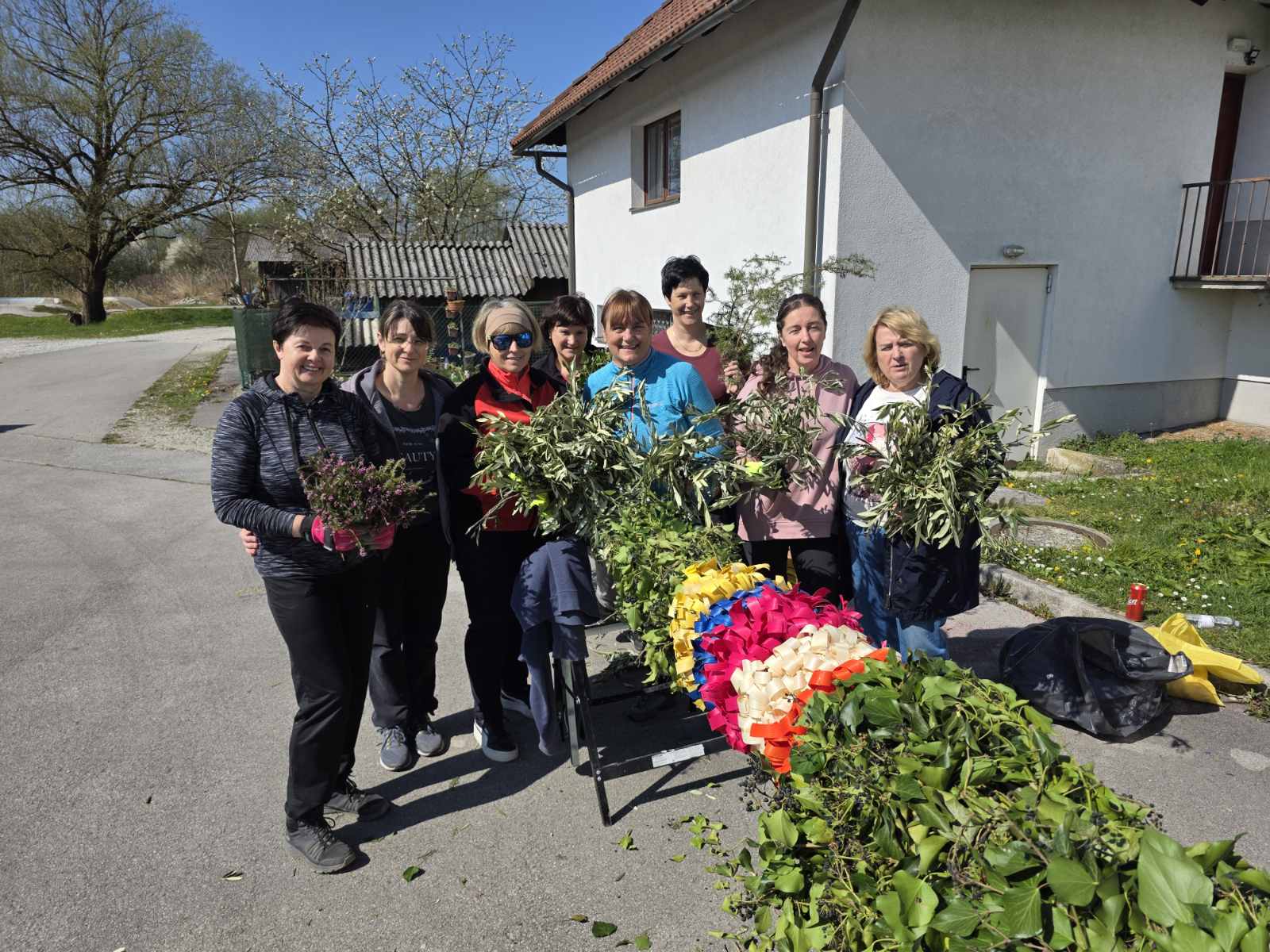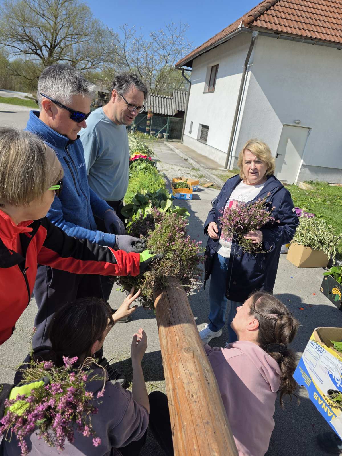 Priprave so potekale več tednov, saj je bilo treba najprej zbrati raznovrstno zelenje, nato pa iz njega spletati številne šopke. Pri tem je sodelovalo veliko pridnih rok – od članov društva do prostovoljcev in podpornikov. Posebnost butare je tudi sedem vrst zelenja, ki imajo v krščanstvu simbolni pomen. V soboto smo šopke postopoma pritrdili na smrekov drog, delo je potekalo usklajeno in v sproščenem vzdušju, pri tem zahtevnem, a hkrati prijetnem opravilu, sta se članom društva pridružila tudi županja Olga Vrankar in župnik Bernard Rožman.